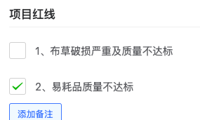 在红线勾选板块问题,勾选就不用再每备注,而且还要选两三次再复杂了,勾选就默认:“同意整改/开业上线前 #1